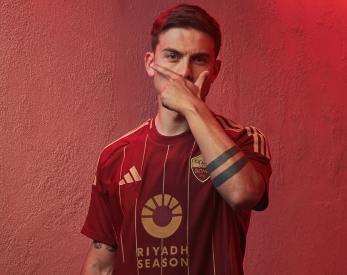 罗马发布24-25赛季主场球衣:主体深红色+金色细纹