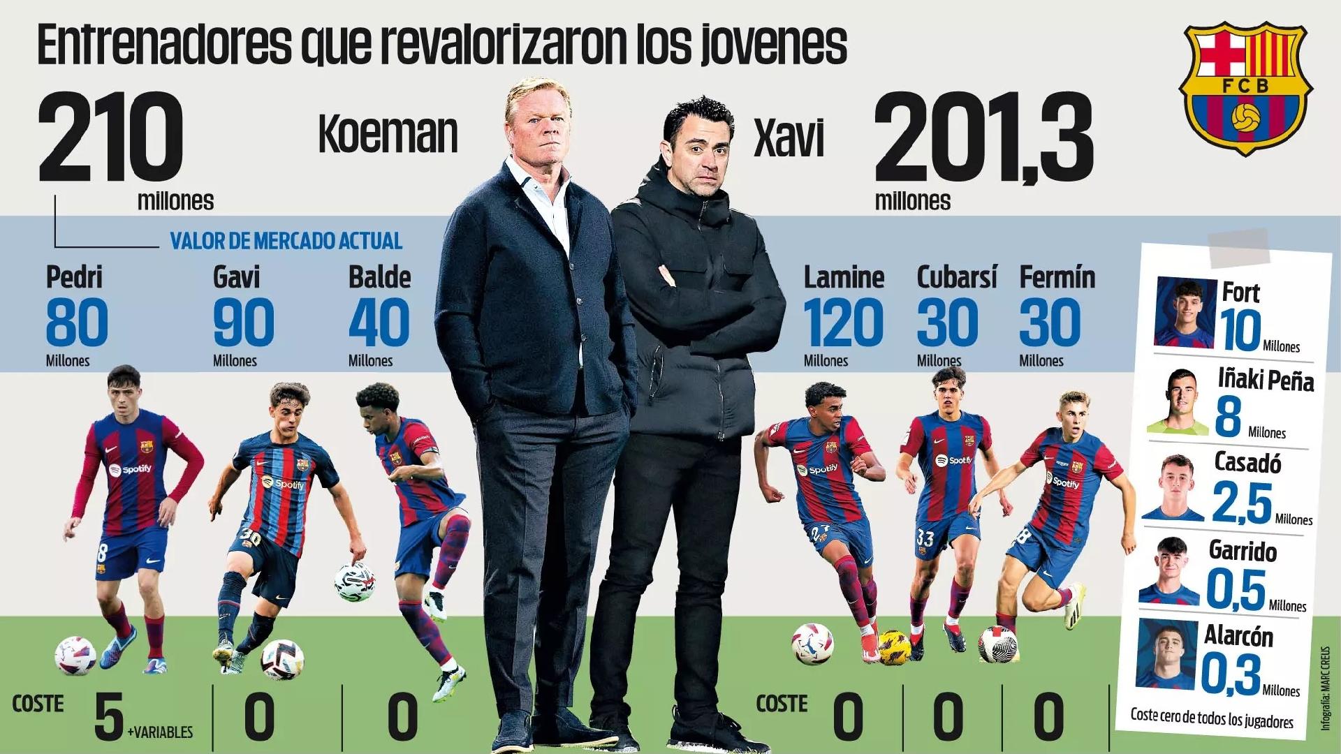 据《每日体育报》最新报道,在罗纳德-科曼和哈维担任主教练期间完成首秀的巴萨青训球员,总身价已经超过了4亿欧元。