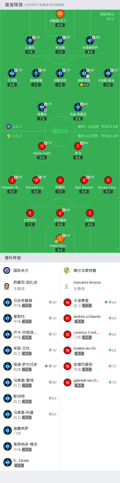 在一场俱乐部友谊赛中,国际米兰迎战佩尔戈莱特塞。上半场姆希塔良助攻塔雷米破门,丰塔纳罗萨远射打高。下半场,萨尔切多替补建功,卡波费里补时阶段扳回一分,最终,国米2-1佩尔戈莱特塞。