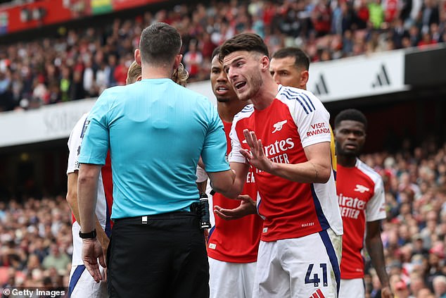 An incensed Arsenal were held to a 1-1 draw by Brighton in the Premier League after Declan Rice was controversially sent off for two yellow cards.