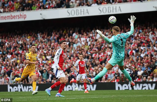 Kai Havertz had coolly dinked the hosts in front on 38 minutes after Bukayo Saka shrugged off Lewis Dunk and threaded the forward through on goal.