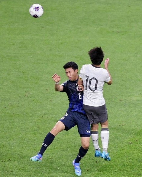 在比赛的第18分钟,南野拓实被杨泽翔铲倒,后者因此吃到了一张黄牌。接着在第21分钟,远藤航在一次空中拼抢中,头部与徐皓阳的肩膀相撞,随后倒在了场上。而在这之后,张玉宁因肘击对手同样染黄。