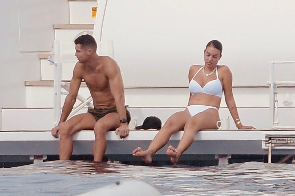 Ronaldo could be seen squeezing Georgina's bum while a naked couple also sailed by them.