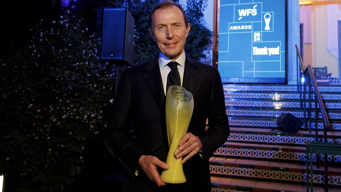 伯纳乌球场被世界足球峰会评选为2024全球最佳球场,皇马高层布特拉格诺在今日代表俱乐部领取了奖杯。