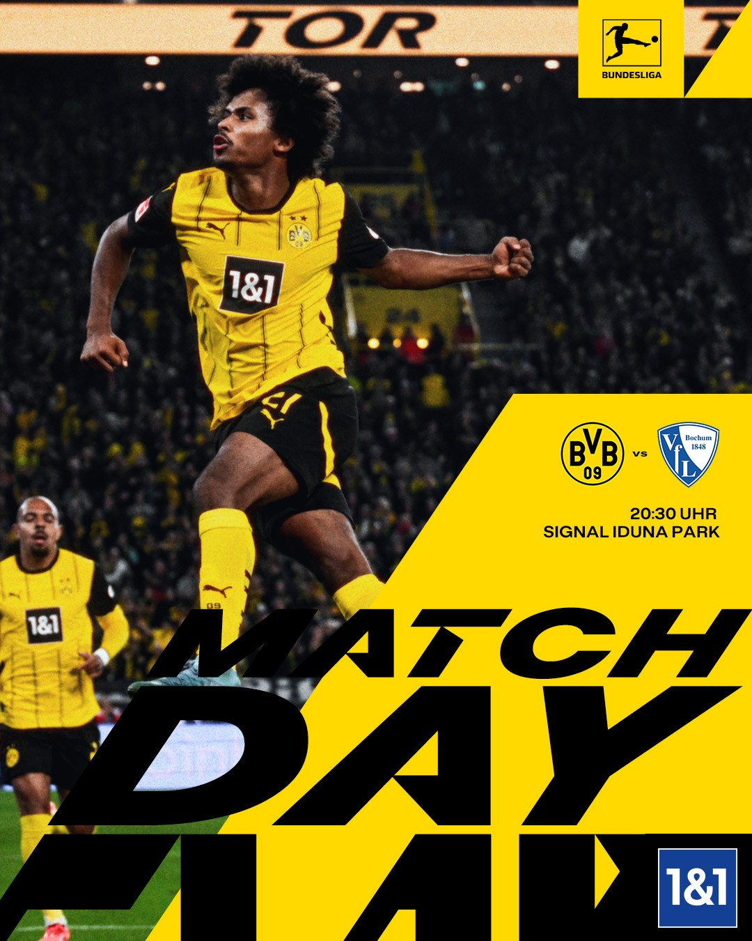 多特官方社媒发布比赛日海报,使用了阿德耶米挥拳庆祝的照片,出现在他身后的是另一名边锋马伦。