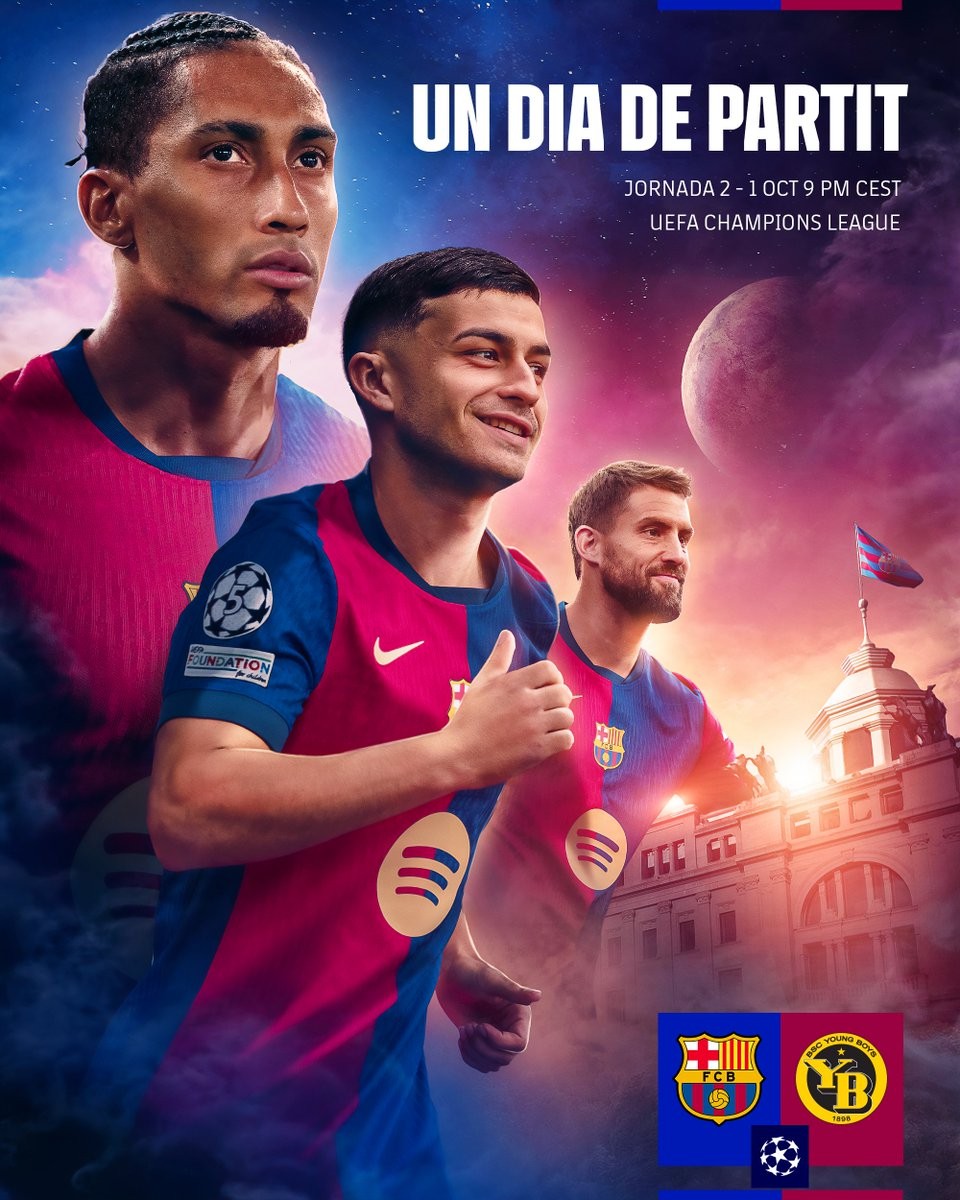 欧冠联赛阶段第2轮,巴塞罗那将主场对阵伯尔尼年轻人,赛前,巴萨官方发布比赛海报,拉菲尼亚领衔出镜。