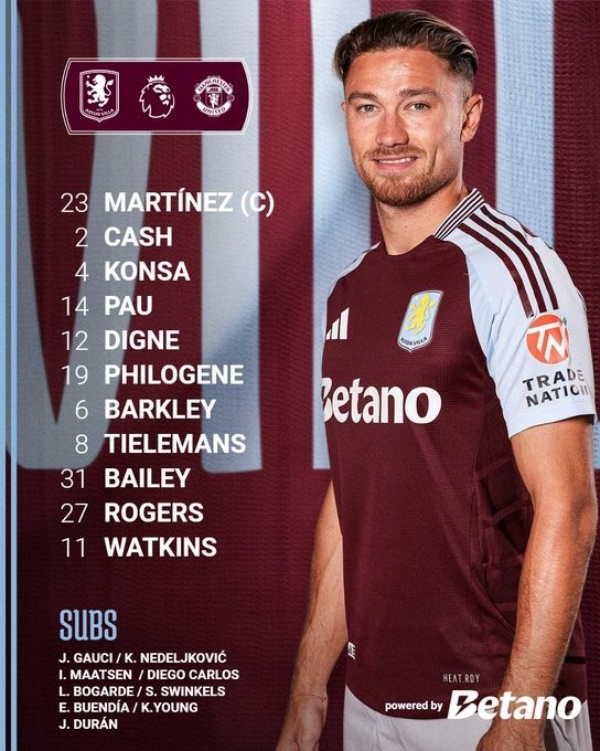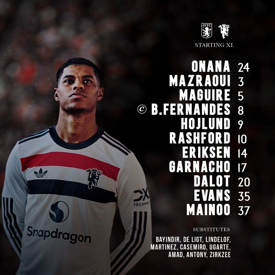 北京时间10月6日晚间21:00,英超联赛第7轮,曼联做客维拉公园球场,挑战阿斯顿维拉,本场比赛主裁判为罗伯特-琼斯,双方首发名单: