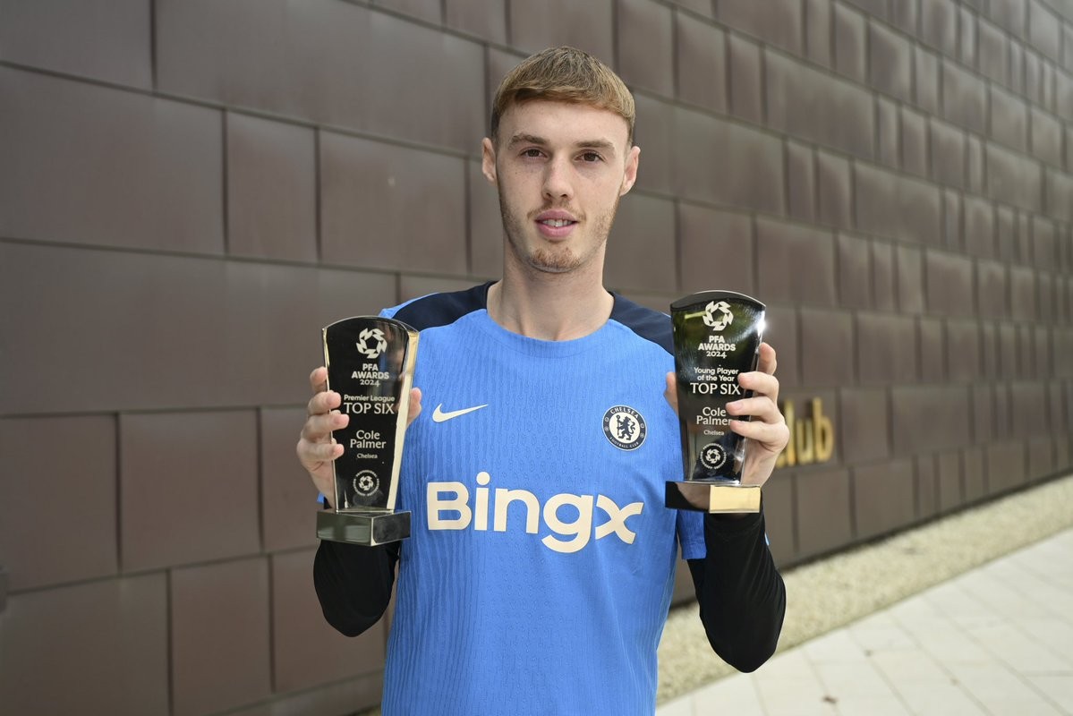 拿到手软,帕尔默领取PFA年度最佳球员+最佳年轻球员前六奖杯