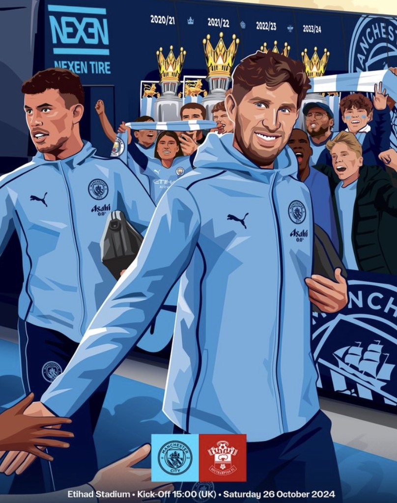 北京时间10月26日晚上22点,英超联赛第九轮,曼城将在主场迎战南安普顿。赛前,曼城官方发布了本场比赛的预热海报。