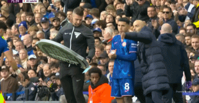 第23分钟,舍尔故意放倒帕尔默,被黄牌警告