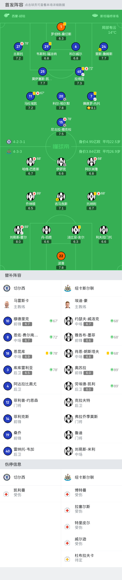 第33分钟,伊萨克后点推射空门得分,纽卡斯尔联1-1扳平切尔西!