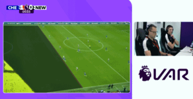 第16分钟,纽卡众将投诉科尔威尔禁区犯规,裁判听VAR示意禁区外犯规