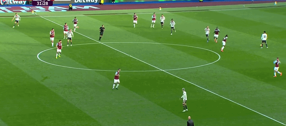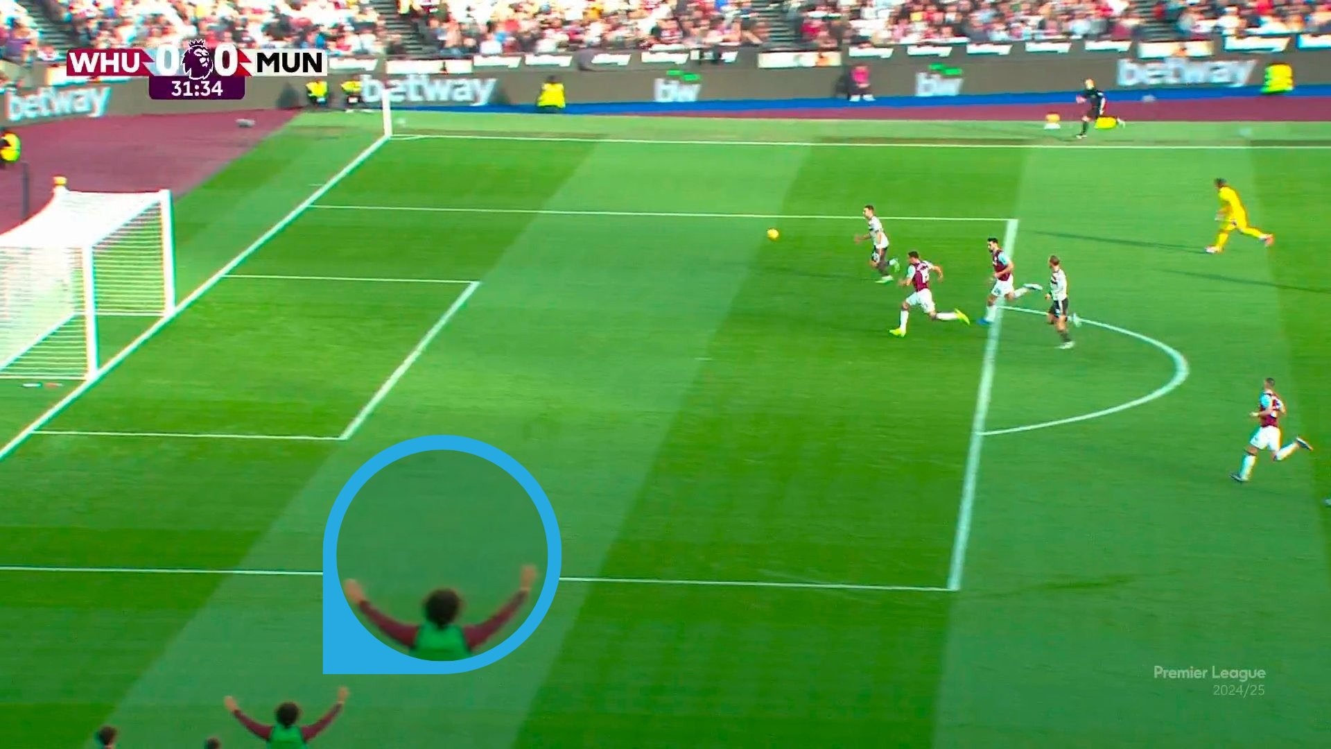 本场比赛第32分钟,布鲁诺-费尔南德斯后场精准长传,达洛特接球后过掉西汉姆联门将法比安斯基,在几乎空门的情况下将球打飞,错失领先机会,而场边的齐尔克泽在达洛特过掉门将后便双手高举庆祝,结果空欢喜一场。