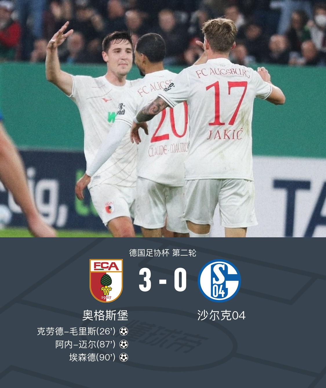 奥格斯堡3-0沙尔克,克劳德-毛里斯、阿内-迈尔、埃森德建功