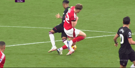 第18分钟,吉多-罗德里格斯身后铲倒吉布斯-怀特,主裁判出示黄牌