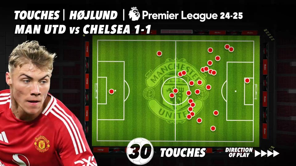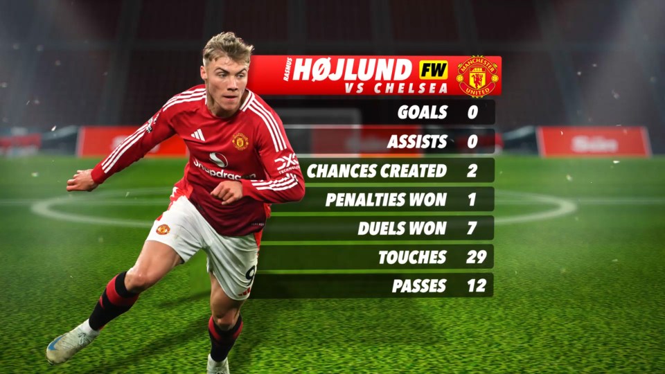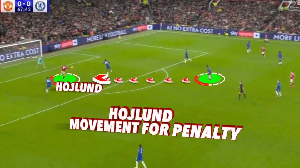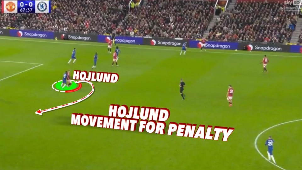 Hojlund drew fouls in the centre of the field, he got them out when they were under a bit of pressure because he won a free kick and he had a good ding-dong with Levi Colwill and Wesley Fofana.