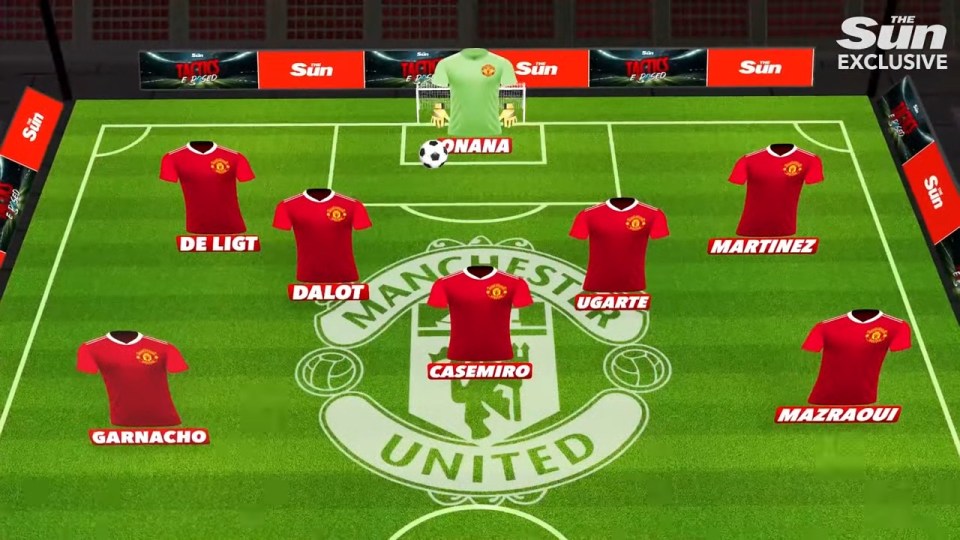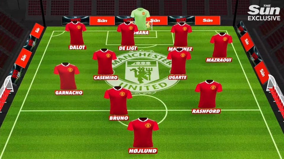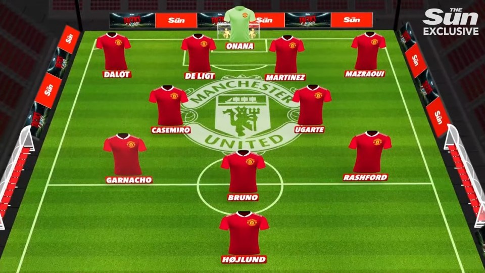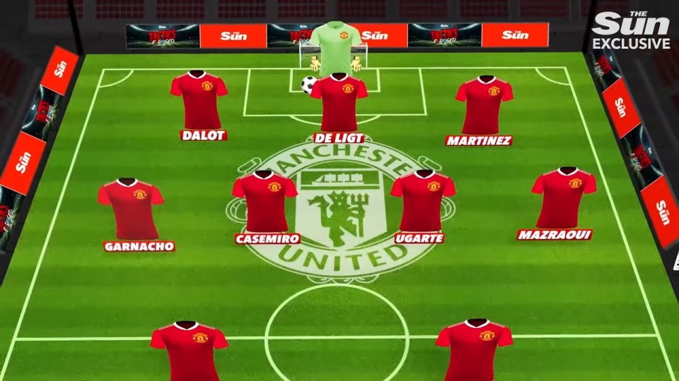 That's where Leny Yoro can come in. We've not seen him yet. And he will be the right centre-back instead of Dalot in that setup, I think. Then De Ligt in the middle so that will make a difference.