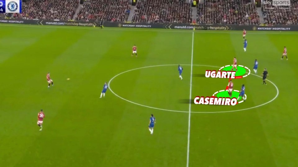 So the inversion of the fullback, four players in there. And what it meant was Casemiro and Ugarte had a really, really big job to do. And Ugarte, we've seen sort of fits and starts so far.