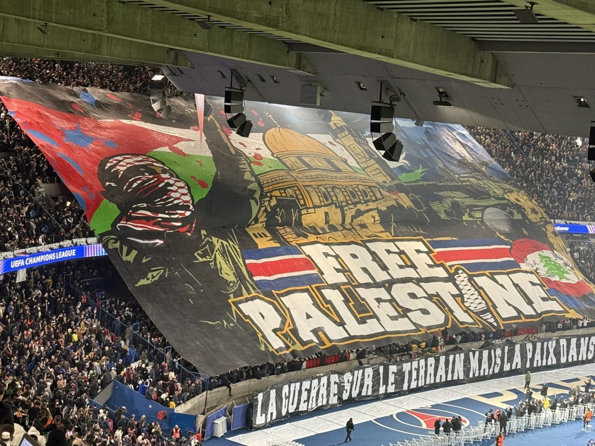 Ahead of Wednesday’s UEFA Champions League encounter against Atletico Madrid, Paris Saint-Germain fans unfurled a large ‘Free Palestine’ tifo at the Parc des Princes.