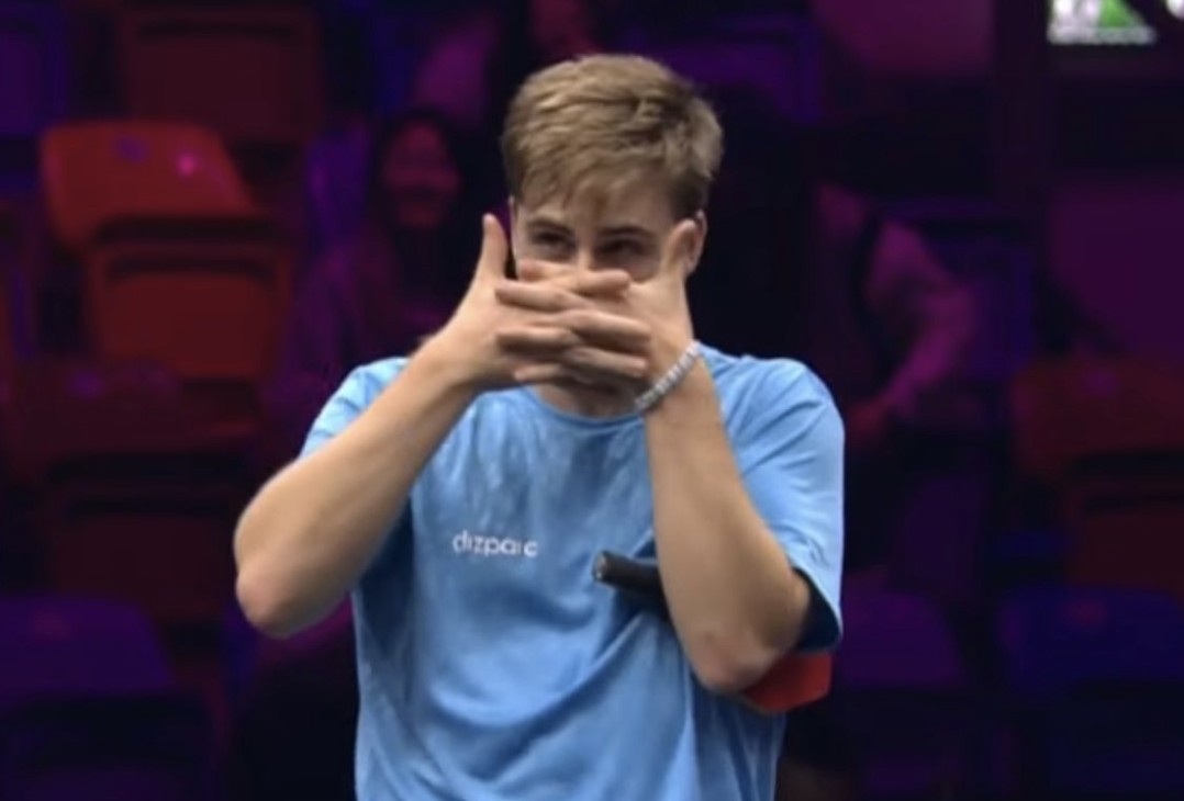 WTT法兰克福冠军赛男单1/8决赛,莫雷加德3-0击败皮切福特,比赛后他做出了葡萄牙体育球员哲凯赖什的庆祝动作。