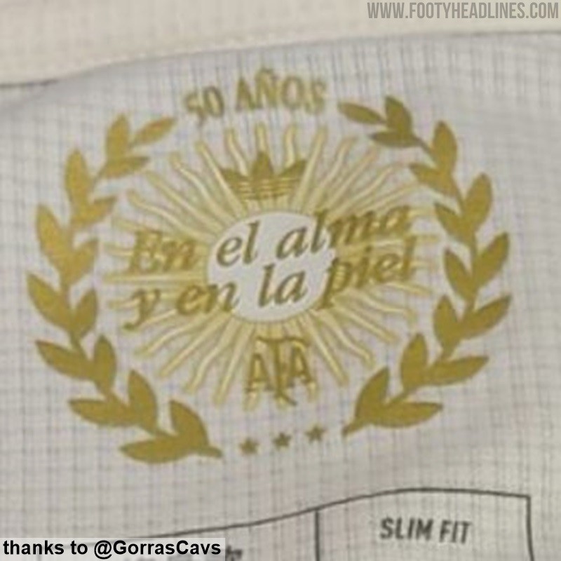 此外球衣内部还印着“En el alma y en la piel(在灵魂和皮肤中)”,同时下方还有三颗金色五星。