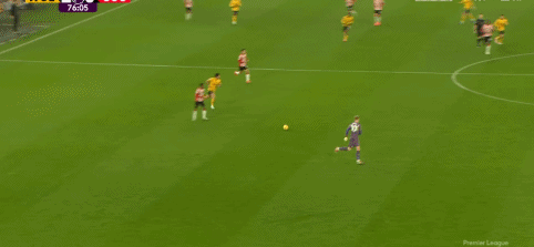 第77分钟,拉姆斯代尔出球失误,狼队中场位置的一脚打门偏出