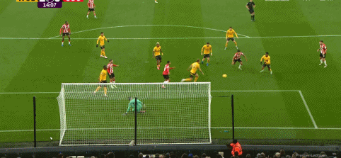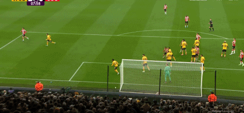 第51分钟,再下一城,库尼亚外围劲射世界波,狼队2-0