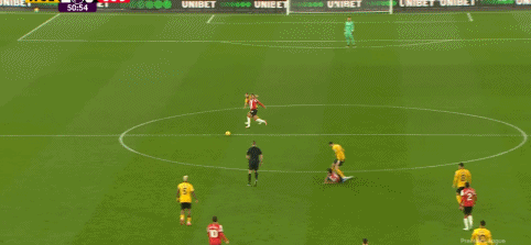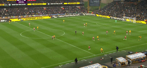 第2分钟,带球入场,库尼亚助攻萨拉维亚先拔头筹,狼队1-0领先