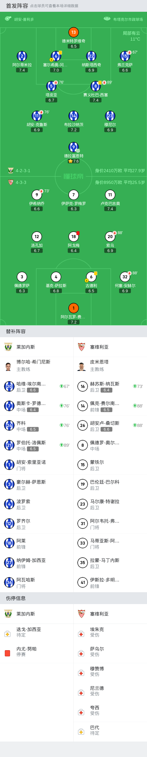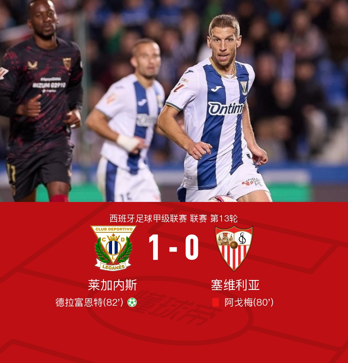 莱加内斯1-0塞维利亚,德拉富恩特点射,阿戈梅染红
