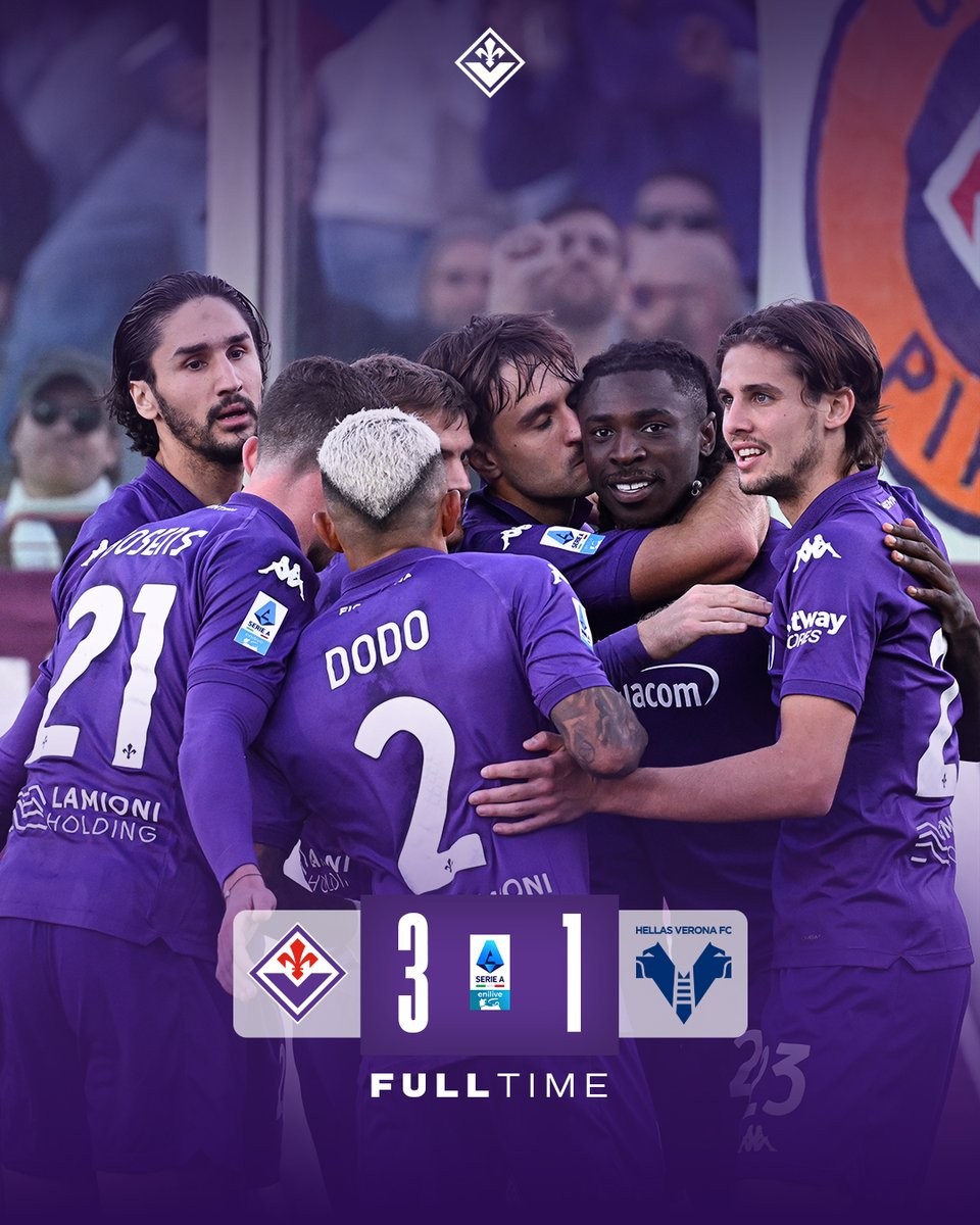 在意甲第12轮的比赛中,莫伊塞-基恩上演帽子戏法,最终帮助佛罗伦萨在主场3-1击败了维罗纳,紫百合也暂时上升至积分榜的第二位。