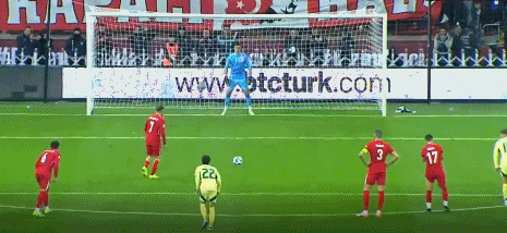 第89分钟,土耳其获得点球机会,阿克蒂尔科奥卢主罚击中立柱弹出