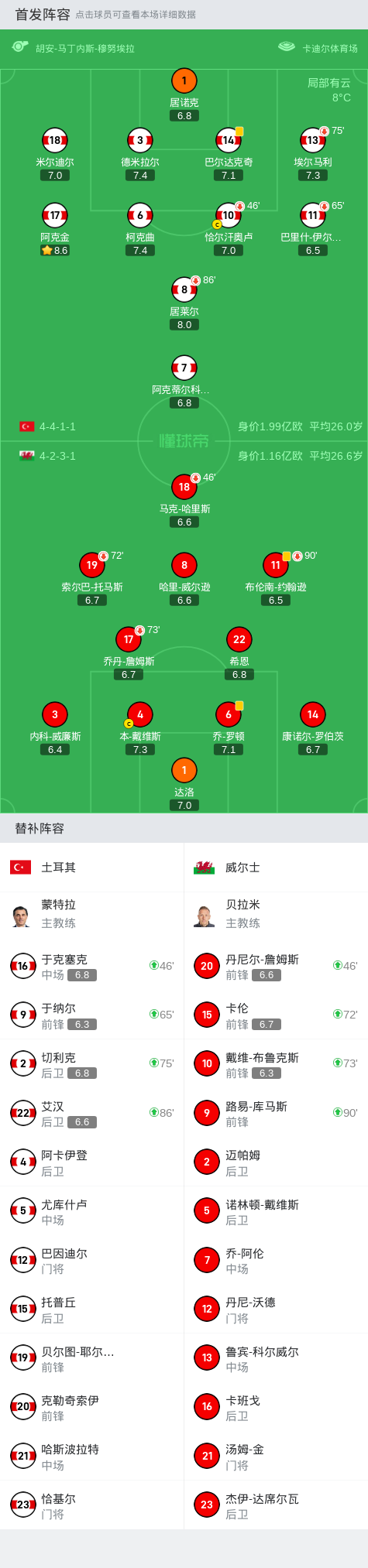 土耳其0-0威尔士,阿克蒂尔科奥卢失点,乔丹-詹姆斯进球被吹