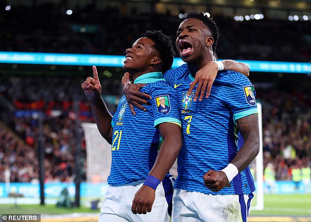 Vinicius Junior, who led Real Madrid to two Champions League titles before he turned 24, was poached from Flamengo for £38million just days after he had made his professional debut, while Endrick, who scored Brazil's winner at Wembley in March, followed his compatriot to the Bernabeu from Palmeiras for an eye-watering £57m in the summer.
