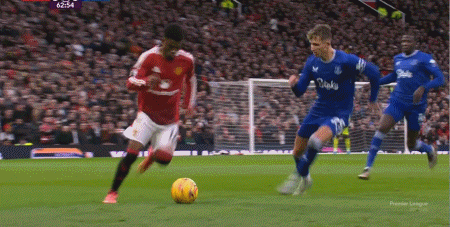 第34分钟,曼联角球配合,拉什福德射门折射入网!曼联1-0埃弗顿