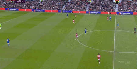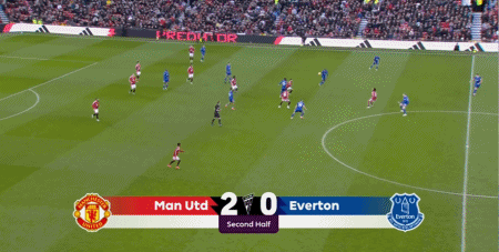 第41分钟,埃弗顿后场失误,B费助攻齐尔克泽打破进球荒!曼联2-0埃弗顿