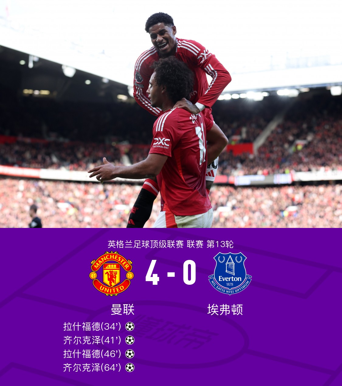 剑南春|曼联4-0大胜埃弗顿,拉什福德、齐尔克泽均梅开二度