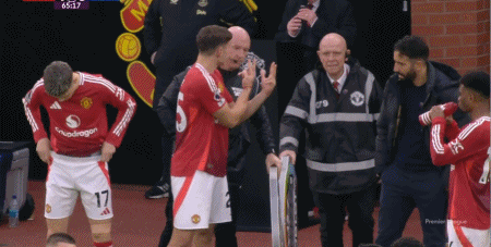 第66分钟,大比分领先,B费和卡塞米罗下场休息,加纳乔、乌加特登场