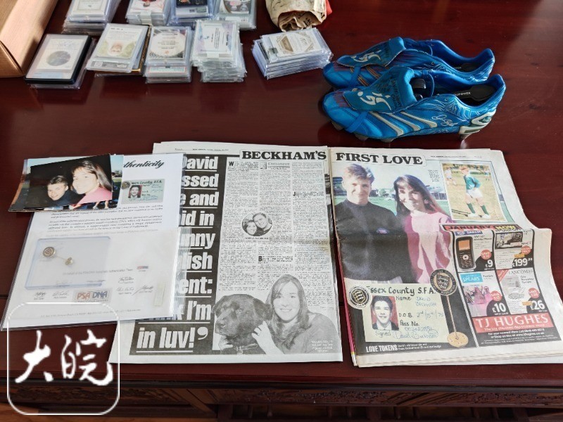 据安徽“大皖新闻”的报道, 来自合肥的收藏家俞雪阳取出自己琳琅满目的藏品,其中还包括贝克汉姆年轻时候的学生证。