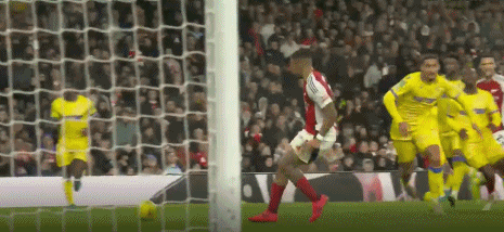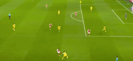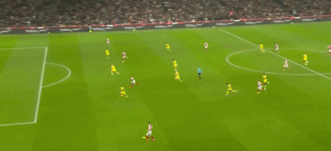 第54分钟,扳平比分,热苏斯抹过后卫轻巧搓射得分,阿森纳1-1