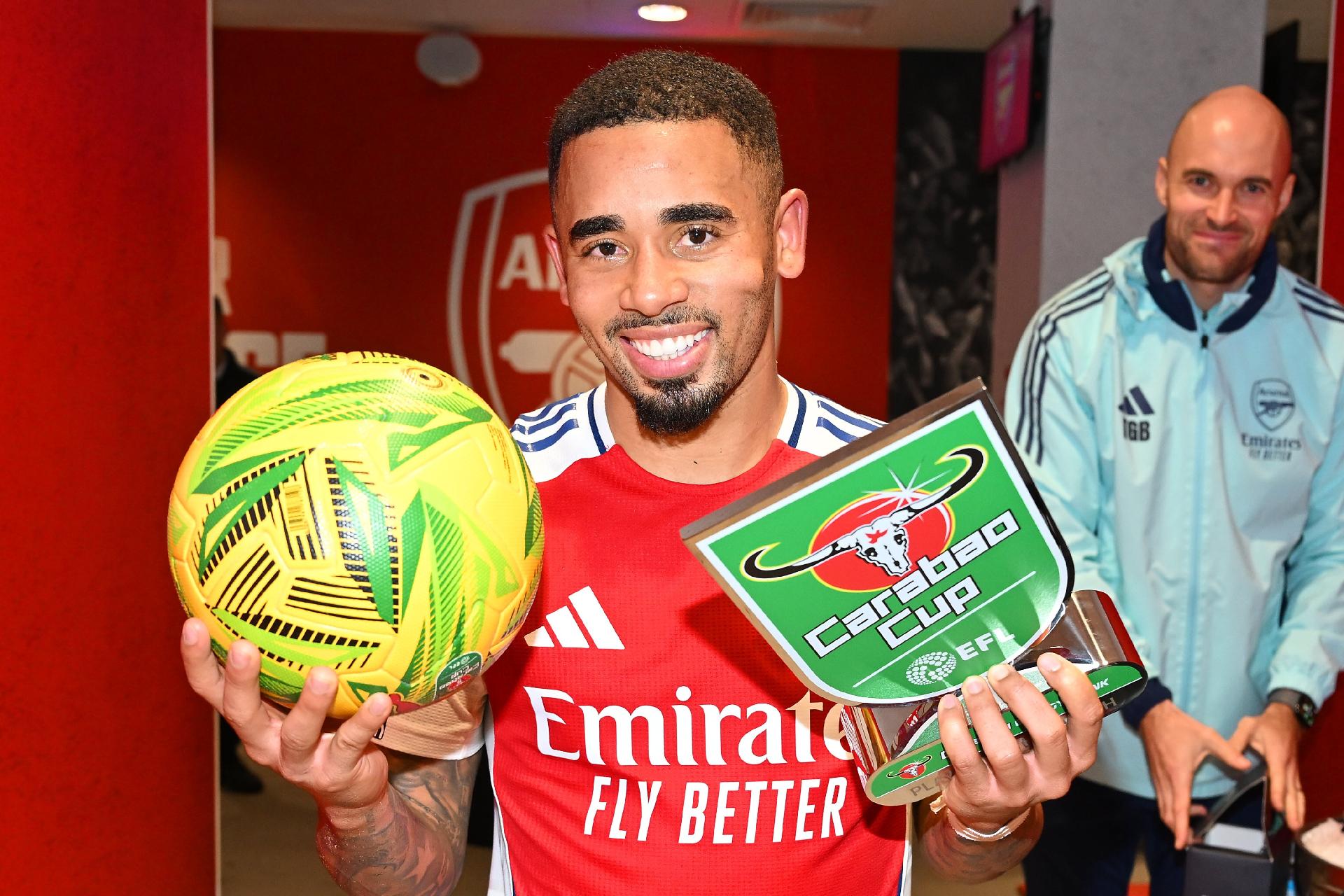 英联杯对水晶宫戴帽,热苏斯当选全场最佳并带走比赛用球