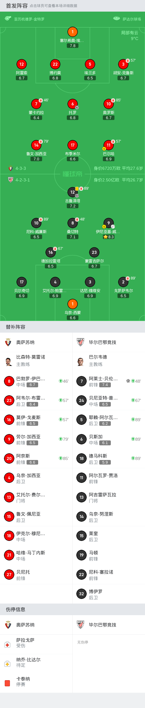 毕尔巴鄂竞技客场2-1逆转奥萨苏纳,古鲁泽塔、贝伦格尔建功