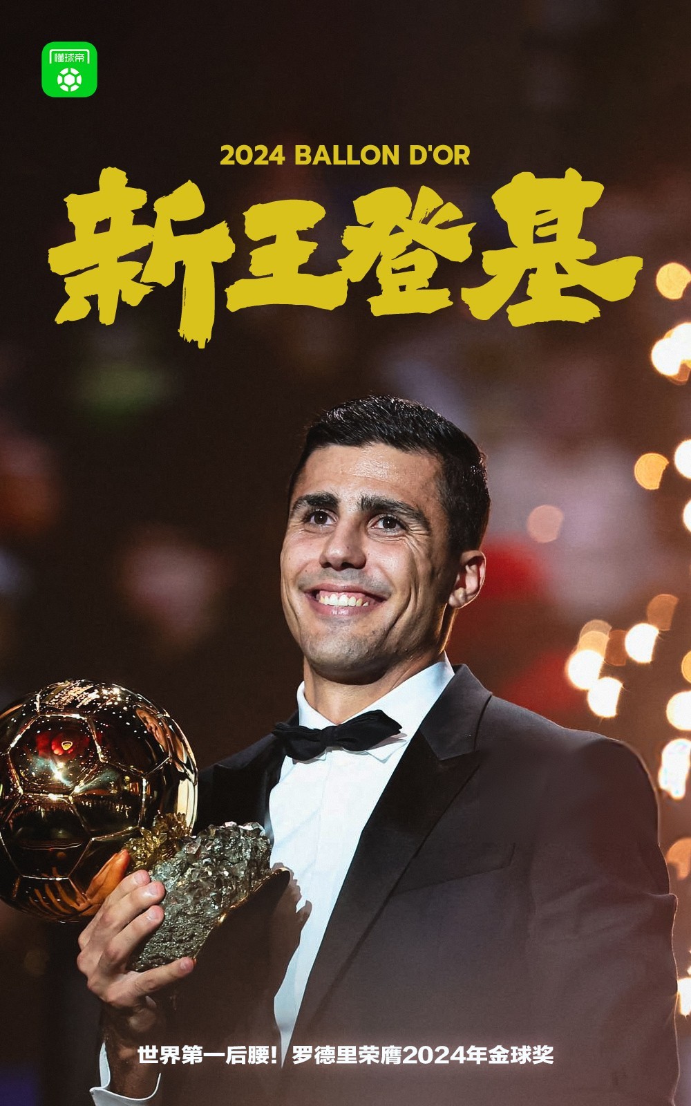 北京时间10月29日,《法国足球》杂志官方在2024金球奖颁奖典礼上宣布,效力于曼城的西班牙中场罗德里荣获2024年金球奖!
