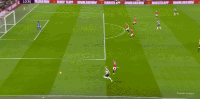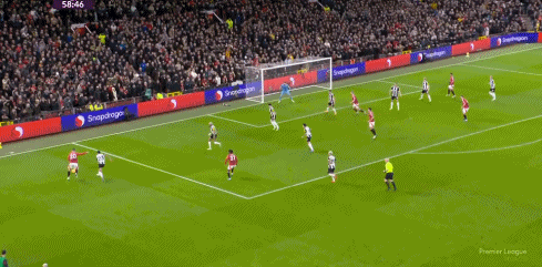第45+2分钟,纽卡后场玩火,卡塞米罗绝佳机会兜射打偏