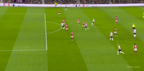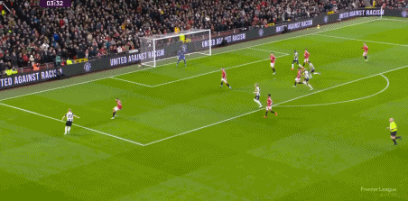 第81分钟,曼联定位球配合,霍伊伦停球太大