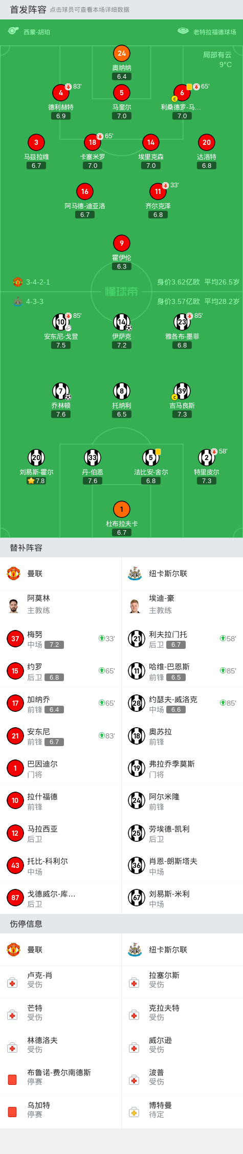 第83分钟,曼联用完换人次数,拉什福德无缘登场