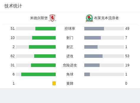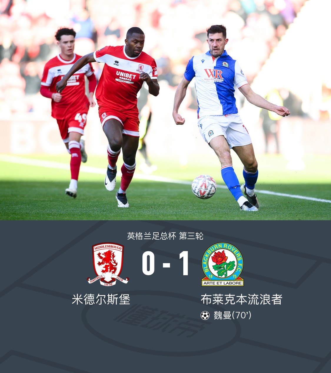 在英格兰足总杯第三轮的较量中,米德尔斯堡迎战布莱克本流浪者。比赛中,布莱克本流浪者的魏曼成功破门,为球队取得领先。最终,布莱克本流浪者以1比0战胜米德尔斯堡。