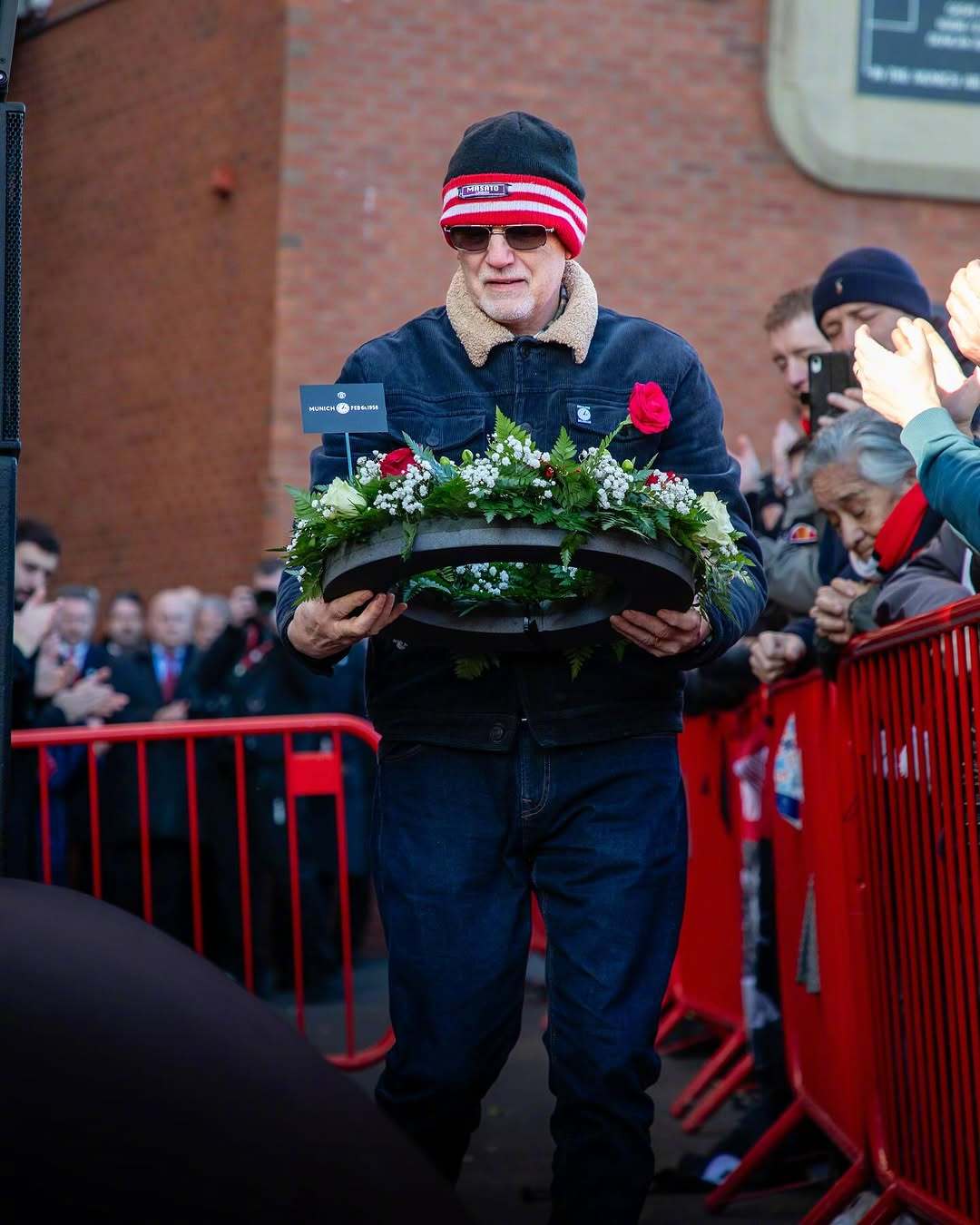 曼联举行慕尼黑空难纪念活动,球队主帅与队长共同敬献花圈