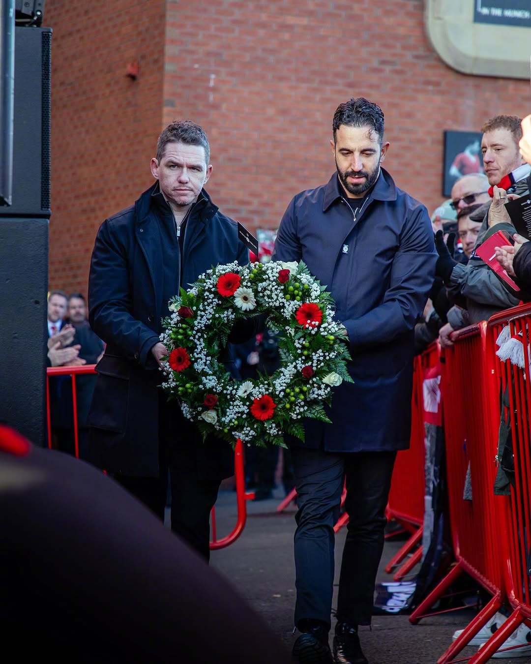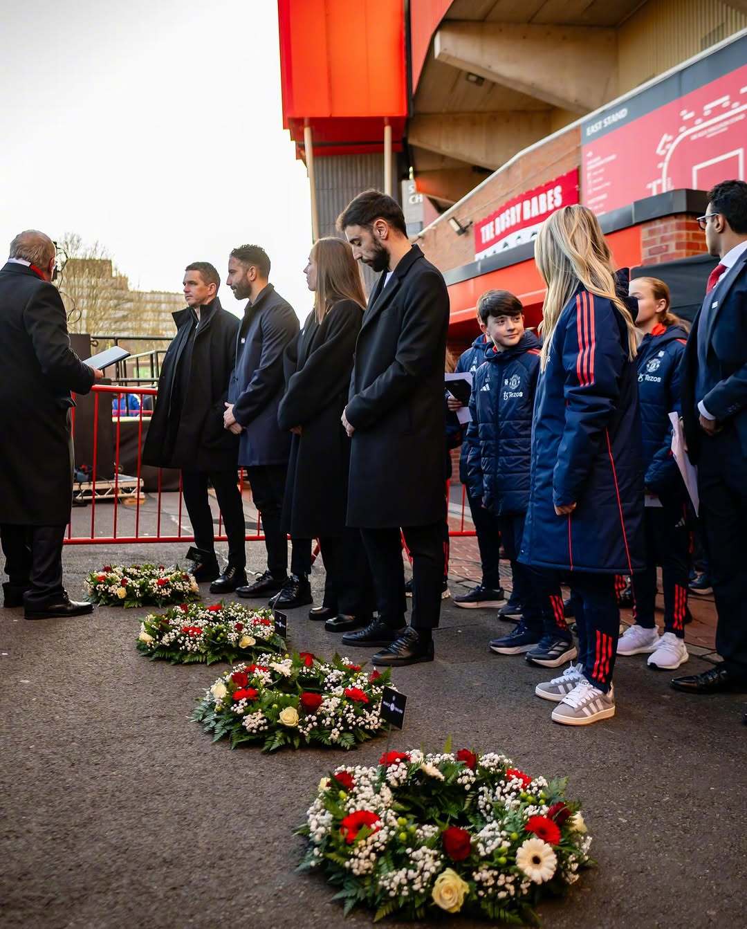 曼联足球俱乐部举行了慕尼黑空难纪念活动,活动在当地时间昨天下午于老特拉福德球场西北角的慕尼黑时钟下进行。男队主教练阿莫林与队长B费、女队主教练斯金纳与队长勒蒂西耶共同敬献花圈。