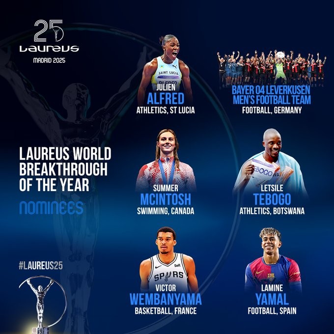 劳伦斯最佳突破奖提名:亚马尔、勒沃库森男足、文班亚马在列