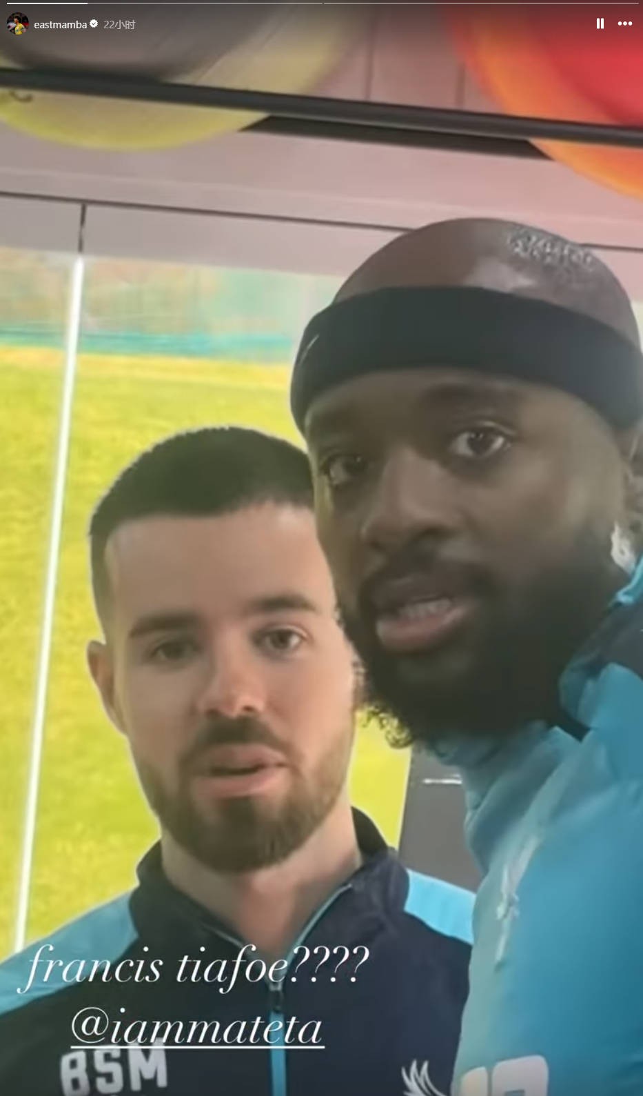 随后,理查兹开玩笑说马特塔的长相像美国网球运动员弗朗西斯-蒂亚福,马特塔在看到理查兹拍摄自己后笑了笑,然后继续锻炼。